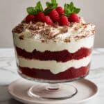 Keywords: Red Velvet Cheesecake Trifle, layered dessert, red velvet cake, cheesecake filling, whipped cream, easy dessert, make-ahead dessert