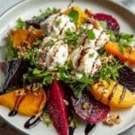 This vibrant Roasted Beets and Carrots Salad with Burrata combines earthy roasted root vegetables with creamy burrata cheese and a tangy honey vinaigrette. Enhanced by sautéed beet greens and fresh rosemary, it’s a flavorful and elegant salad perfect for a wholesome lunch or a stunning side dish.