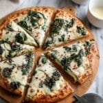 Roasted Garlic Spinach White Pizza is a creamy and savory pizza featuring richly roasted garlic, fresh sautéed spinach, and a blend of ricotta, mozzarella, and Parmesan cheeses on a homemade pizza dough. This recipe provides a delicious, flavorful alternative to traditional tomato-based pizzas, perfect for cozy dinners or entertaining guests.