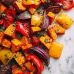 Keywords: roasted vegetables, vegetable medley, oven-roasted, healthy side dish, vegan side, fresh herbs, caramelized vegetables