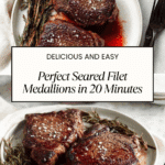 This Seared Filet Medallions recipe offers a quick and elegant way to prepare tender, flavorful beef medallions. Using a cast iron skillet, the medallions are seared to a perfect medium-rare with fragrant butter and fresh rosemary, delivering a rich and juicy steak experience in just 20 minutes.