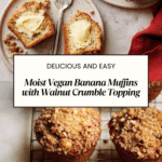 These Seriously Good Vegan Banana Muffins are moist, flavorful, and perfectly sweetened with natural ingredients. Made without eggs or dairy, they use aquafaba and a vegan ‘buttermilk’ to achieve a tender crumb. The muffins are topped with a crunchy walnut crumble for added texture and a touch of cinnamon and nutmeg for warm spice notes. Perfect for breakfast or a wholesome snack, these muffins are easy to prepare and bake to a golden perfection.