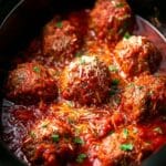 Keywords: slow cooker meatballs, party snack meatballs, easy meatballs, slow cooker appetizer, meatballs recipe, barbecue meatballs, marinara meatballs