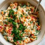 This creamy, spicy chicken salad is made with fresh herbs, crunchy vegetables, and a kick of heat from sriracha. Perfectly balanced with Greek yogurt and mayo for a light yet flavorful dish, it packs 30g of protein per serving. Ideal for sandwiches, wraps, or as a snack with pita chips or crackers, this easy-to-make recipe is ready in just 15 minutes and is great for meal prep.