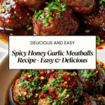 Delicious and easy-to-make Spicy Honey Garlic Meatballs, baked to perfection and coated in a flavorful sweet and spicy garlic sauce. Perfect as an appetizer, main dish over rice, or in a sandwich.
