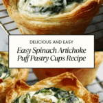 These Spinach and Artichoke Puff Pastry Cups make a delicious and elegant appetizer that’s perfect for parties or a cozy snack. Crispy puff pastry filled with a creamy, cheesy spinach and artichoke mixture will surely delight your taste buds.