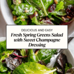 This Spring Greens Salad with Champagne Dressing is a vibrant and refreshing mix perfect for a quick, healthy meal or a festive side. The combination of tender greens, crunchy walnuts, tangy feta, and sweet dried cranberries tossed in a light champagne dressing creates a delightful blend of flavors and textures.