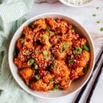 - Toss and Garnish: Once cauliflower is baked, transfer it to a large bowl and toss with the sticky sesame sauce until well coated. Garnish with sesame seeds, chopped spring onions, and sliced chillis. Serve immediately for the best texture and flavor.