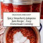Keywords: strawberry jam, jalapeño jam, homemade jam, spicy fruit jam, strawberry preserves, canning recipe, fruit preserves