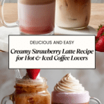 A delicious and refreshing Strawberry Latte that can be enjoyed hot or iced, combining the sweetness of strawberry syrup with rich espresso and creamy milk for a perfect coffee treat.