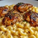 This Sweet and Spicy Honey Pepper Chicken with Macaroni and Cheese is a deliciously comforting meal featuring tender, marinated chicken thighs baked to perfection and served alongside creamy, cheesy macaroni. The combination of honey, paprika, and cayenne pepper creates a perfect balance of sweetness and heat that complements the rich cheddar macaroni, making it a crowd-pleasing dinner ideal for any occasion.