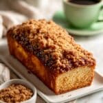 - Step 8: Sprinkle the crumble evenly over the batter in the loaf pan.