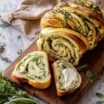 Swirled Garlic Herb Bread is a fragrant and flavorful yeast bread featuring a rich swirl of garlic, fresh herbs, and Parmesan cheese. Soft and buttery on the inside with a golden crust, this bread is perfect served warm with extra butter for an indulgent treat at any meal.