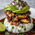This vibrant and flavorful Tangy Honey Lime Chicken & Avocado Rice Stack combines juicy, marinated grilled chicken breasts with fragrant jasmine rice and a refreshing avocado, red onion, and cilantro mix. This dish offers a perfect balance of sweet, tangy, and savory notes, making it a delightful and healthy meal that’s ideal for lunch or dinner.