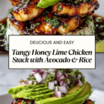 This tangy honey lime chicken paired with a creamy avocado rice stack is a vibrant and refreshing meal perfect for any occasion. Combining sweet, zesty, and savory flavors, it offers a delightful balance that’s both satisfying and healthy.