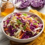 Store the coleslaw in an airtight container in the refrigerator for up to 3 days. It tastes best when served chilled, and a quick toss before serving helps redistribute any dressing that may have settled. Avoid freezing as the texture will become soggy.