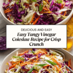 This tangy vinegar coleslaw is a vibrant and refreshing side dish perfect for any barbecue or picnic. Crisp cabbage and carrots mingle with a zesty dressing to create a flavorful, crunchy salad that’s ready in just 10 minutes.