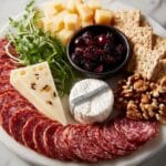 Create an inviting Thanksgiving Cheese Board featuring a variety of cheeses, salami, crackers, nuts, dried fruits, and spreads. This easy, no-cook appetizer is perfect for holiday entertaining, balancing creamy, sharp, and savory flavors with crunchy and sweet accompaniments.
