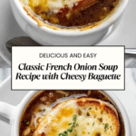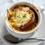 Keywords: French Onion Soup, caramelized onions, Gruyère cheese, rich beef broth, classic French recipe, comfort food, baguette, savory soup