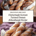 Twisted Donuts, or Kkwabaegi, are light, fluffy Korean-style fried dough treats coated in cinnamon sugar. Their unique twisted shape and crispy exterior make them irresistibly fun to eat. Perfect for breakfast or a sweet snack any time of day.