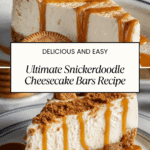 Keywords: Snickerdoodle Cheesecake, Cinnamon Sugar Dessert, Cheesecake Bars, Three Layer Cheesecake, Gingersnap Crust, Cream Cheese Dessert, Homemade Cheesecake, Fall Dessert, Cinnamon Dessert