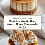 This Vanilla Bean Brown Butter Cheesecake is a decadent dessert featuring a buttery graham cracker crust and a rich, creamy filling infused with the nutty flavor of browned butter and aromatic vanilla beans. Baked in a gentle water bath, this cheesecake has a smooth, luscious texture with a slight jiggle at the center, perfect for any special occasion or sweet craving.