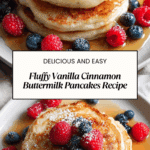 Vanilla Cinnamon Buttermilk Pancakes are fluffy and flavorful pancakes perfect for a cozy breakfast or brunch. Combining the warmth of cinnamon with the sweet aroma of vanilla, these pancakes are moist and tender thanks to the buttermilk, creating a delightful treat that the whole family will love.