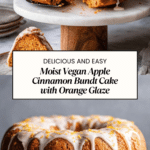 This Vegan Apple Cinnamon Bundt Cake is a moist, spiced dessert perfect for cozy gatherings or a sweet treat any time. Packed with warm cinnamon, cloves, nutmeg, and a delightful crunch of walnuts, this plant-based cake combines applesauce and apple juice for natural sweetness and moisture. Finished with a zesty orange glaze, it’s an irresistible, dairy-free delight that’s easy to prepare and perfect for 16 servings.