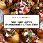 Keywords: vegan caprese bruschetta, vegan appetizer, vegan snack, Italian vegan recipes, vegan bruschetta, plant-based appetizer