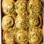 - Step 11: (Optional) Whisk oat cream with 1 tablespoon pistachio butter and pour over the proofed buns just before baking to add extra gooeyness.