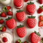 Keywords: vegan strawberry cookies, strawberry sandwich cookies, vegan dessert, dairy-free cookies, strawberry buttercream