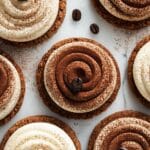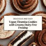 These Vegan Tiramisu Cookies combine rich coffee-flavored cookie dough with a decadent dairy-free mascarpone-style frosting and a gooey dark chocolate center. Perfectly soft with crisp edges, these cookies bring the classic tiramisu dessert into a convenient, vegan cookie form. Enhanced with a dusting of cocoa powder, they offer a delicious balance of coffee, chocolate, and creamy sweetness in every bite.