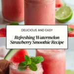 This refreshing Watermelon Smoothie is a vibrant, healthy blend of fresh watermelon, frozen strawberries, banana, and a hint of lime, enhanced with vegan yogurt and sweetened naturally with maple syrup. Perfect for a quick, nutritious breakfast or an energizing snack, this smoothie combines fruity flavors with creamy texture in just minutes.
