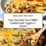 Keywords: zucchini taco skillet, vegetarian taco skillet, black bean skillet, one-pan taco dinner, healthy zucchini recipe, cheesy zucchini skillet, gluten free dinner